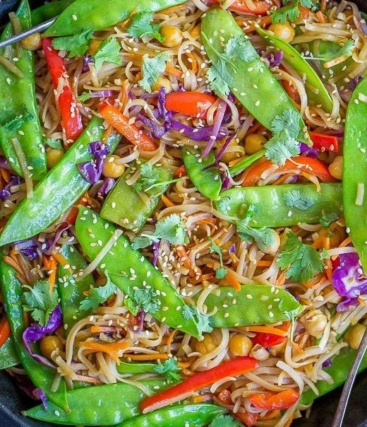 These Sesame Ginger Noodles are a quick and easy Asian inspired dinner packed with veggies, chickpeas and flavour!